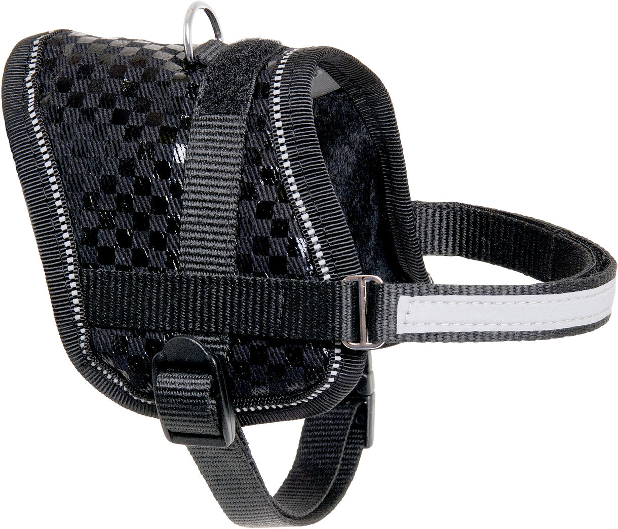 Dit handige puppytuigje uit de Eeny Meeny collectie is gemaakt van polyester. Het tuigje kan eenvoudig worden aangedaan bij de pup door middel van de borstband, die voorzien is van klittenband. Hierdoor kun je de borstband volledig losmaken en hoeft het tuigje niet over de kop van de pup. Veel honden vinden dit eng of vervelend, maar met dit puppytuigje ga je dus fijn en stressvrij op pad. Het puppyharnas is voorzien van een reflecterende streep op de borstband en reflecterende stiksels, zodat jullie goed opvallen in het verkeer. Materiaal: nylon met vulling: PU schuim, Traploos verstelbaar, Kliksluiting en klittenband om de borstriem te verstellen, Afgewerkt met zachte fleece aan de binnenkant, Reflecterende stroken, Met een ring voor het bevestigen van een leiband